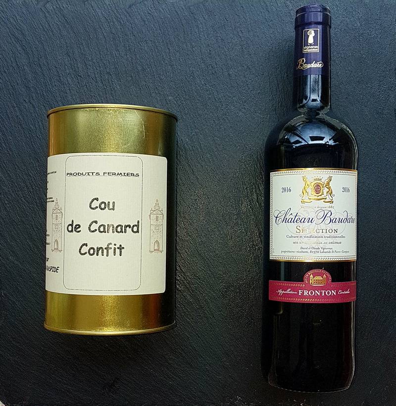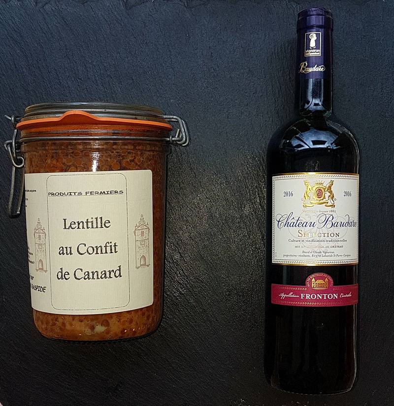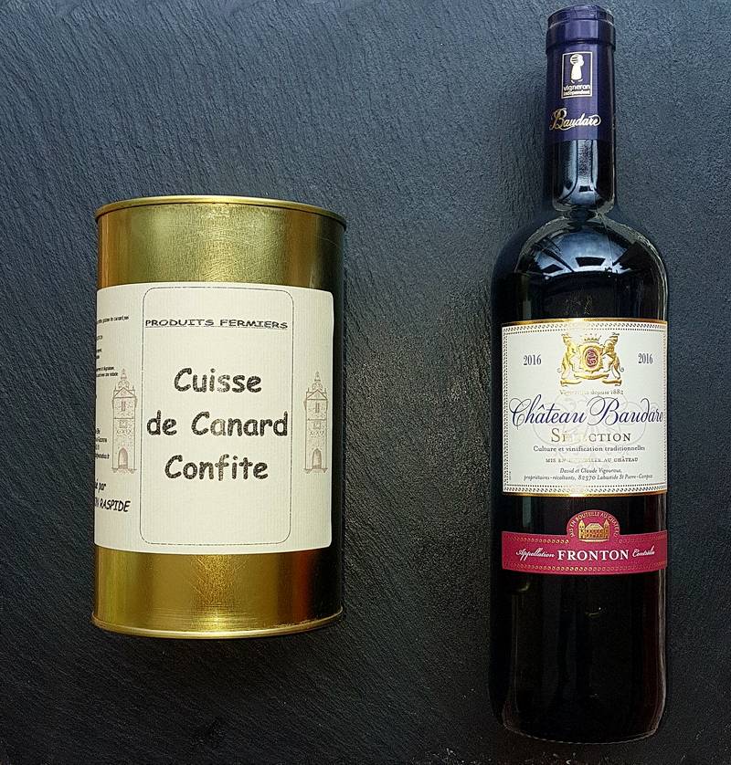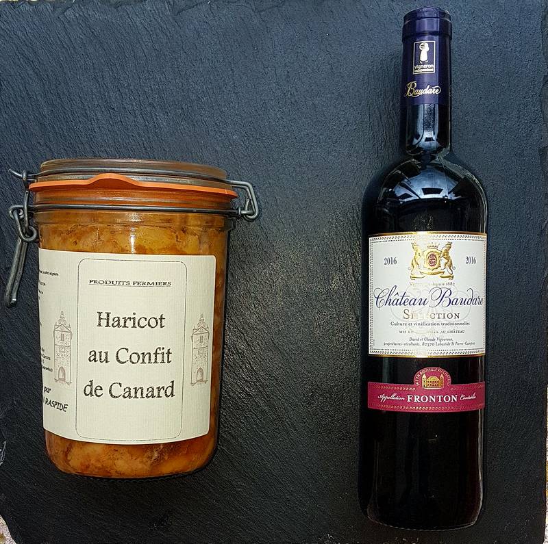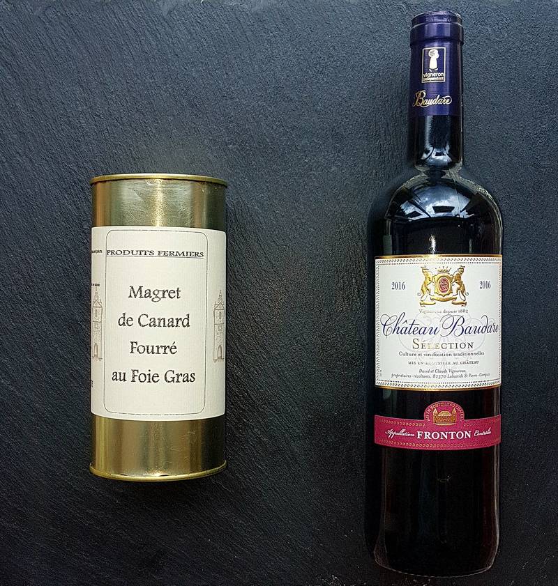 En accompagnement nous vous conseillons un vin rouge Domaine Baudare Sélection AOC Fronton