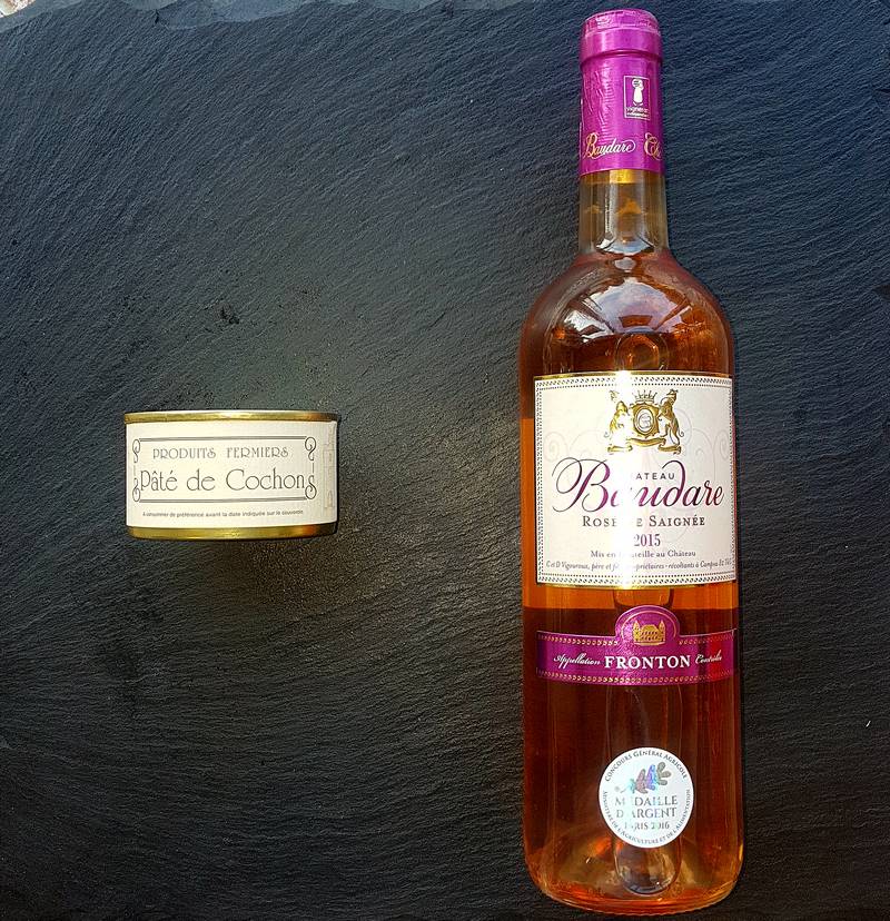 En accompagnement nous vous conseillons un vin rosé  Domaine Baudare Rosé de Saignée AOC Fronton