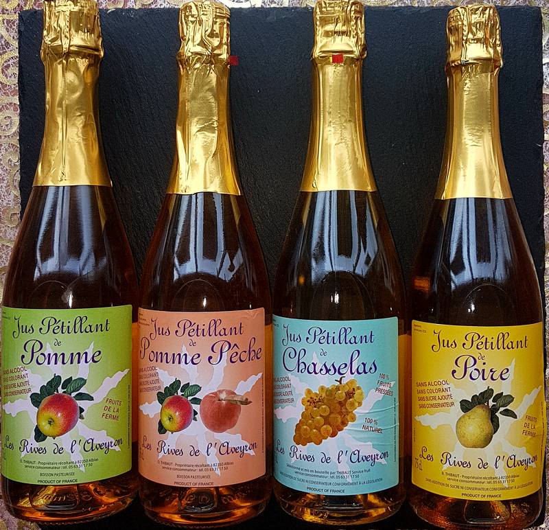 Jus Pétillant de Pomme , Pomme Pêche , Chasselas , Poire